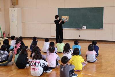 今日は1・2年生を対象に、「けんか山」「せんそうとへいわ」という2冊の本を読んでくださいました。
