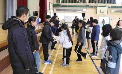 修了式では、各学年の代表児童が通知票を受け取りました。