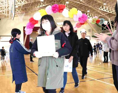 最後は、在校生から色紙のプレゼント。