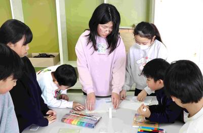 今まで、縦割り班のリーダーとしてがんばってくれた6年生に、お礼の気持ちを込めて作りました。