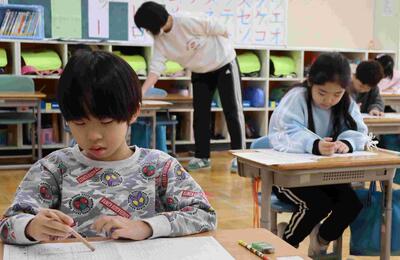 今日と明日は、学力調査の日です。今年勉強したことを振り返る、大切な時間です。みんな問題と真剣に向き合う姿が見られました。