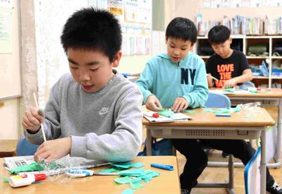 クリスマスツリーづくり 12月8日(月) 投稿: 森田小学校 (13:52) 本校の事務の先生による特別授業、クリスマスツリーづくりが2年生で行われました。先生の作り方を見て、「楽しそう!」「早く、作りたーい」など、みんなやる気満々!材料の組み合わせを工夫して、オリジナルのクリスマスツリーを完成させるために、みんな集中していました。