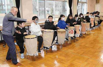 縄文太鼓体験 12月16日(火) 投稿: 森田小学校 (12/16) 5・6年生の総合的な学習の時間に、ゲストティーチャーを招いて森田の歴史(縄文時代)について学びました。その後、ゲストティーチャーの指導で、縄文太鼓の演奏体験をしました。 演奏をとおして、一体感を味わうことができました。ありがとうございました。